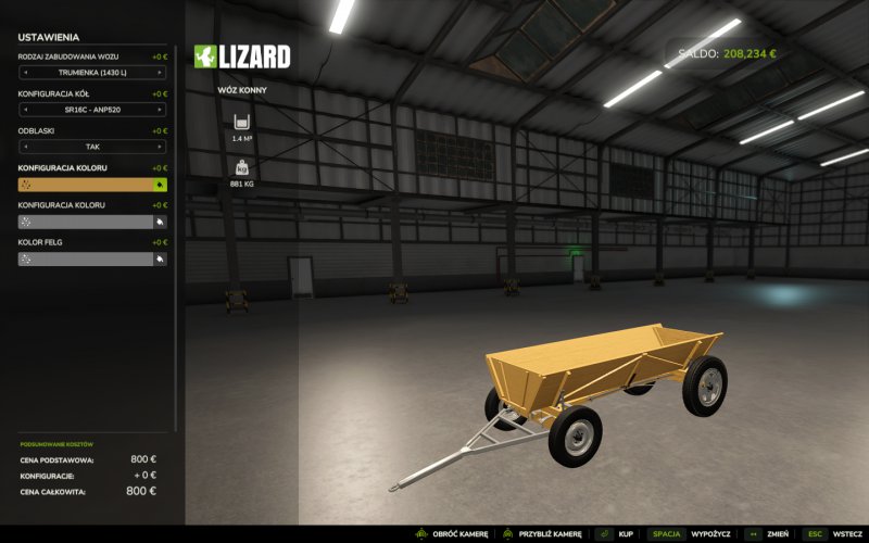 – Pojemność: 1430 litrów – Konfiguracje kolorystyczne i wizualne – Cena: 800 USD -Konfiguracja Kolorów